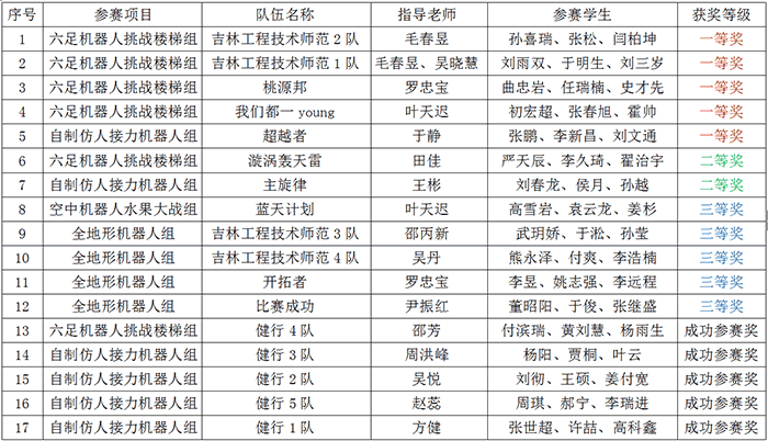 11月4日,首届吉林省高校机器人大赛在吉林大学举行。经过激烈的角逐,在全省20所高校259支参赛队伍中,beat365官网代表队获得一等奖5项,二等奖2项,三等奖5项的优异成绩。其中机械工程学院毛春昱老师指导的代表队在六足机器人挑战楼梯组力压群雄,勇夺该组别亚军。