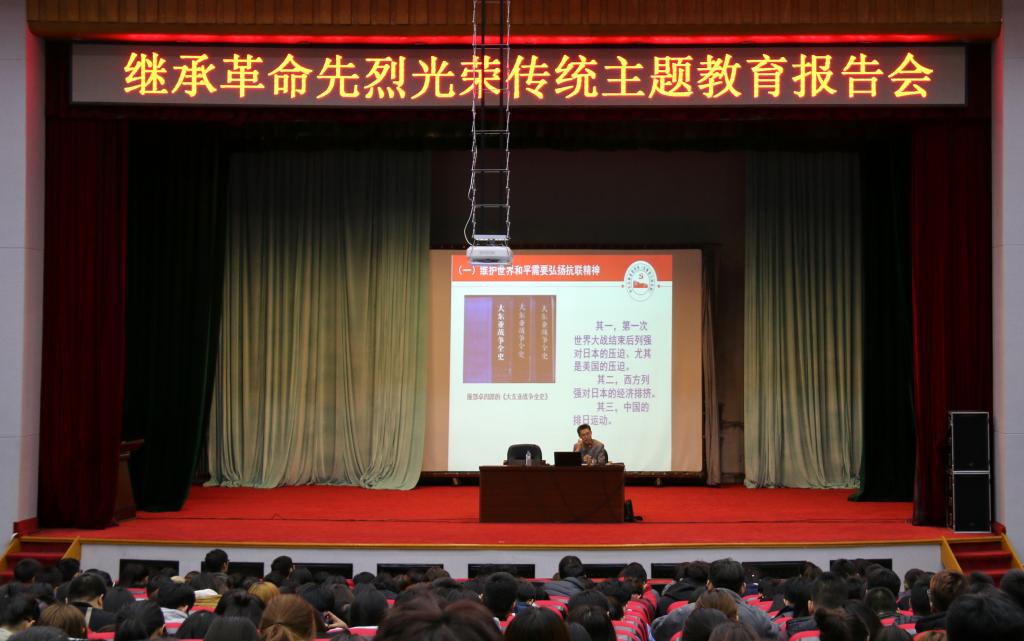 为深入推进学校“青马工程”建设,进一步加强大学生思想政治教育,10月31日,校团委在报告厅举办“继承革命先烈光荣传统”专题报告会,邀请中共吉林省委党校哲学教研部袁中树副教授作了专题报告。各学院党总支副书记、分团委书记,部分学生党员、青马学员、入党积极分子,共计500余人参加了报告会。报告会由校团委书记王宝龙主持。