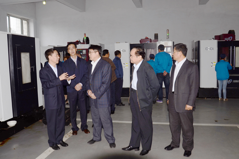 在机械工程学院先进制造技术实验中心,王化文副省长听取了机械工程学院负责人的有关情况汇报,观看了同学们操作数控机床进行机械部件加工训练,并走近一台正在工作的大型数控铣床面前,仔细查看了控制与加工过程。调研组一行还参观了同学们利用先进制造设备加工的机械部件作品展览。