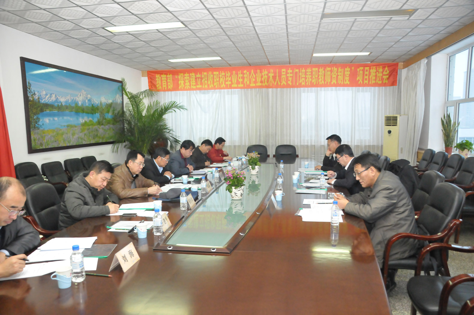 2013年12月11日,教育部教师队伍建设示范项目“探索建立招收职业学校毕业生和企业技术人员专门培养职业教育师资制度”推进会在beat365官网召开,项目负责人省教育厅战高峰副厅长和发展规划处纪拓处长、职业与成人教育处李富中副处长以及长春市机械工业学校滕少峰校长参加会议,beat365官网栾立明院长、刘君义副院长以及省职业教育研究中心(学院职教研究院)于志晶主任、刘海、陈衍,教务处崔亚新处长,招生就业处张存贵处长等参加会议。
