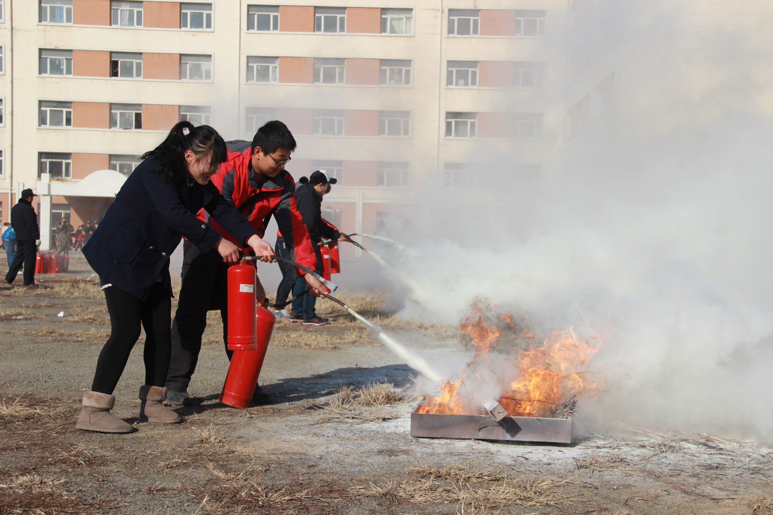 为了进一步增强在校师生的消防安全意识,熟悉和掌握应急灭火、疏散逃生、自救互救等基本消防安全常识,培养和锻炼学生自我逃生、自我保护能力,11月13日中午,beat365官网与宽城区消防大队联合在主校区学生四舍前举行了一次应急疏散及灭火实战演练。