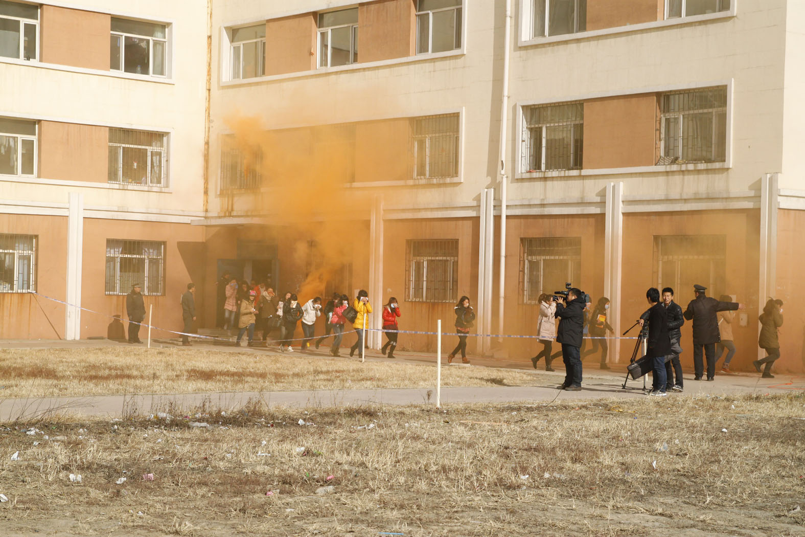 此次实战演练场景模拟真实、活动组织严密,参加演练师生达2600余人,宽城区公安消防大队出动消防车辆3辆,消防官兵20余人,120救护中心出动救护车1辆。学校领导王建华、张云志、刘君义、张鹏参加了演练活动,部分师生员工观摩了演练。中午12时10分演练正式开始,演练的内容及科目包括:楼内疏散、逃生演练、楼内解困、救援演练、楼体模拟灭火演示、水带连接比赛、违规使用禁用电器后果演示、初起火灾扑灭演练等,至12时50分演练活动圆满结束,取得了预期效果。
