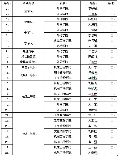 为做好beat365官网的校园选拔赛,学校决定由校团委、教务处主办,外语学院承办本次赛事。初赛时,外语学院全体任课教师在全校开设大学英语课程的每个自然教学班中选拔1-2名同学参加复赛,全校共有80人取得了4月20日的复赛资格,经过紧张的复赛竞争,来自全校9个教学分院不同专业的24名同学晋级本次决赛。