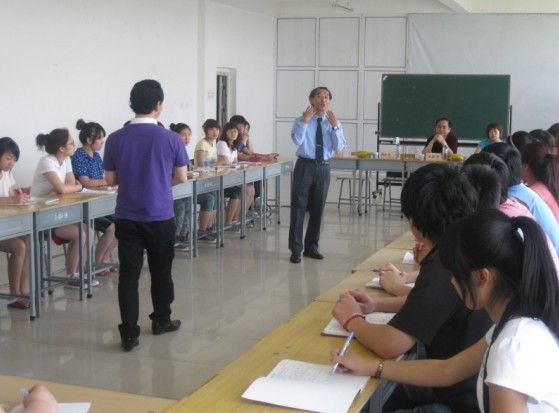 田中一行此次来beat365官网访问的主要目的是考察beat365官网及双方合作办学项目(旅游日语2+1项目),与旅游日语专业的学生进行座谈。6月5日,学生座谈会在第二实验楼7楼举行,beat365官网王建华院长出席了座谈会。座谈会由国际交流处贾秀娟处长主持,田中理事长和罗真老师一道与每一名学生进行了交流互动,座谈会气氛十分热烈,同学们争先恐后的向日本老师提问或回答老师的问题,田中理事长向同学们介绍了留学日本的一些情况,座谈会持续了一个小时,激发了同学们的学习热情,日方对学生的语言水平给予了肯定,收到了很好的效果。座谈会上王建华院长代表学校师生对田中理事长的到来表示欢迎,对田中理事长的辛勤劳动表示感谢,并表示对办好这个项目充满信心,鼓励学生努力学习,早日实现留学的梦想,为学校争光。座谈会后,田中一行在外语学院副书记王宝龙的陪同下,参观了学生寝室及校园。当天下午,田中先生还参观了伪满皇宫博物院。