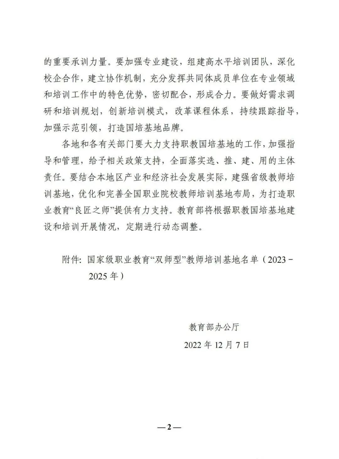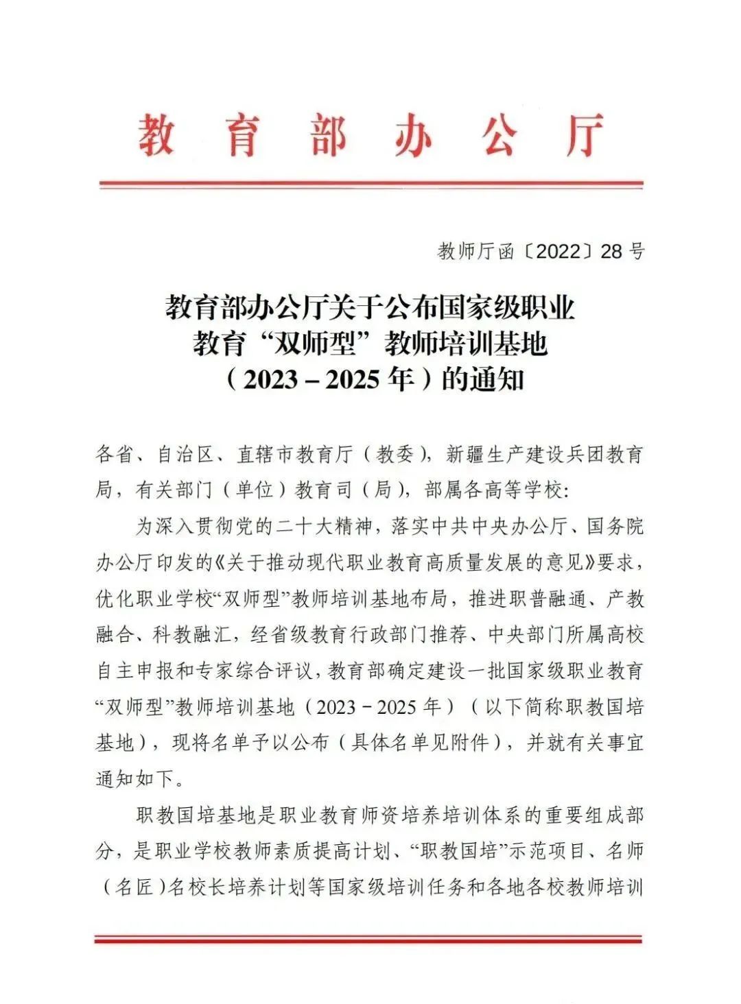 12月7日,教育部公布了国家级职业教育“双师型”教师培训基地名单,遴选国家级职业教育“双师型”教师培训基地。beat365官网申报的装备制造大类机械设计制造类“双师型”教师培训基地成功入选。