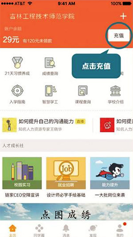 第2步:点击主页面“充值”,选择或输入充值金额进行充值。