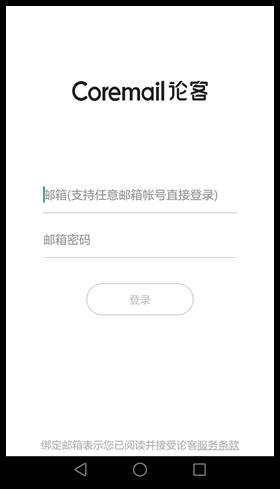 打开“Coremail论客”APP,首次使用进入登录页面,如下图所示: