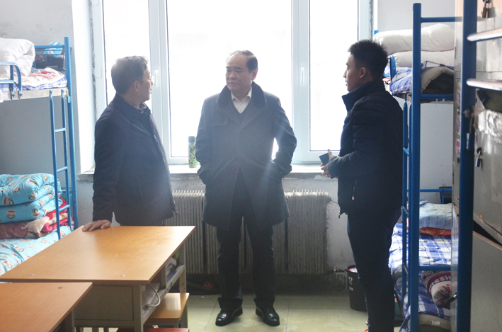 11月19日下午,校党委书记王建华深入学生宿舍看望大学生,并指导检查了学生宿舍的卫生、供暖、安全用电、考研自习室等情况。