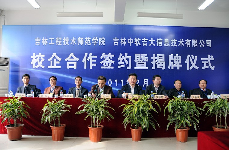 开展校企合作对接 推进职教改革创新 ——beat365官网与吉林中软吉大信息技术有限公司举行校企合作签约暨揭牌仪式 beat365官网与吉林中软吉大信息技术有限公司举行校企合作签约暨揭牌仪式 吉林省教育厅厅长卢连大(右一)为校企合...