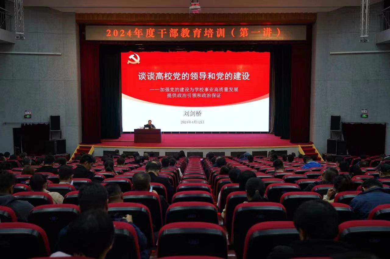 4月12日,学校举办2024年度干部教育培训工作暨党纪学习教育动员部署会。教育培训第一讲由学校党委书记刘剑桥主讲《加强党的领导和党的建设,为学校事业高质量发展提供政治引领和政治保证》。全体处科级干部在报告厅听取了辅导报告和工作部署。辅导报告系统阐述了五个方面主要内容:一要把党的领导贯穿办学治校全过程,党委要承担管党治党、办学治校主体责任,负责把方向、作决策、抓班子、带队伍、保落实。实施党委领导下的校长负责制是坚持社会主义办学方向的根本制度,...