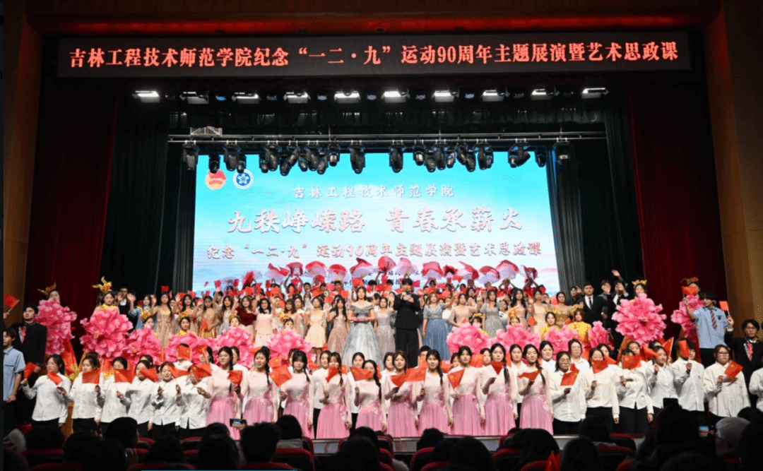 为铭记“一二·九”运动的光辉历史,赓续爱国奋斗的精神血脉,beat365唯一官方网站以思政为引领、以艺术为载体,于12月10日在凯旋校区报告厅举办纪念“一二·九”运动90周年省级示范活动暨艺术思政大课。学校党委书记刘剑桥、党委副书记刘鹏飞、纪委书记马晓春、党委常委宣传部部长程宇,共青团吉林省委学校部干部牟溪、张阔,校工会、各学院党委书记、全体学团干部以及500名大学生齐聚一堂,在“觉醒·初心启明”“烽火·青春远征”“...