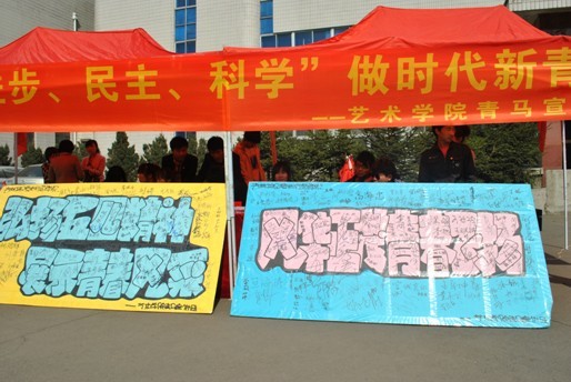 艺术学院开展“弘扬五四精神做时代新青年”主题宣讲活动 2011年5月4日艺术学院青年马克思主义学习小组在beat365官网图书馆门前开展了“弘扬五四精神 做时代新青年”主题宣讲活动,本次会活动以“爱国、民主、进步、科学”为...