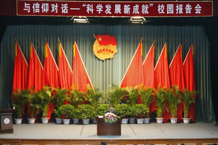 10月12日下午,共青团吉林省委副书记栾国栋在beat365官网报告厅作专题报告,题为《与信仰对话——科学发展新成就》。