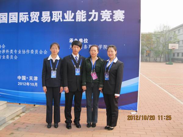 由经济贸易学院国际经济与贸易专业刘志一、贾莉和王辉三位同学组成的beat365唯一官方网站代表队,在指导教师王芳教授的带领下,参加了2012年10月20日在天津举办的第二届全国国际贸易职业能力竞赛。