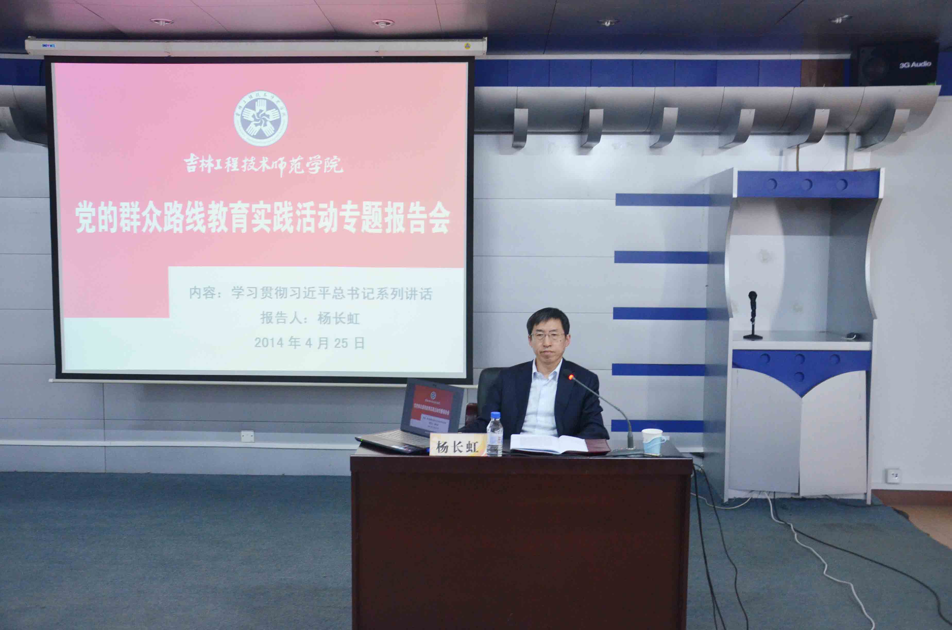4月25日,学校在三教多功能厅举行党的群众路线教育实践活动专题报告会,学习贯彻习近平总书记系列重要讲话精神。