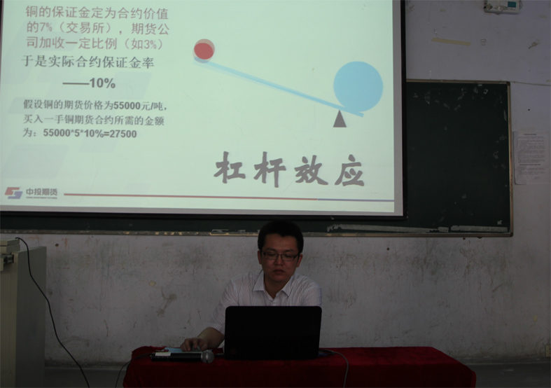 为实现课堂教学与企业实践近距离接触,拓宽学生的专业视野, 5月23日下午1点,经济贸易学院在实验楼五楼阶梯教室举办了题为“一个期货从业者眼中的期货市场”的专题讲座。