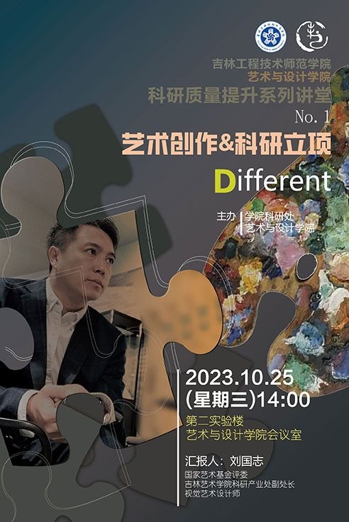 主讲人:刘国志,男,吉林艺术学院教授时间、地点:2023年10月25日,艺术与设计学院会议室主办单位:艺术与设计学院、科研处讲座内容: 1.艺术创作与科研项目的区别;2.如何养成创作项目思维;3.项目案例解析。